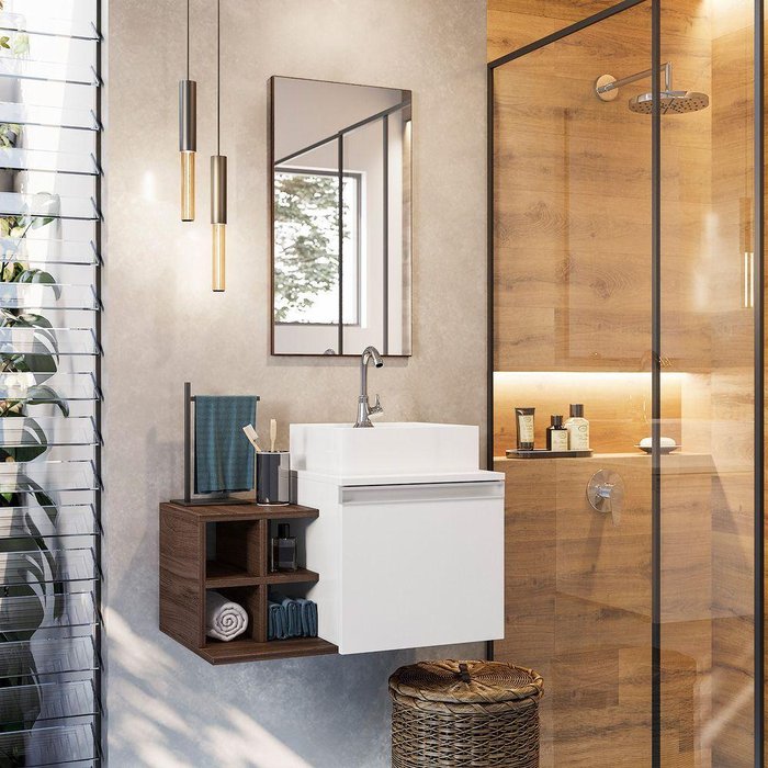 Ter o banheiro dos sonhos fica fácil com a mobília correta. Aliando elegância e praticidade, o Conjunto para Banheiro Roma completo, composto por um gabinete suspenso e espelheira com espelho, não necessita de muito espaço para ser instalado, é fácil de limpar e dá um super up na decoração de qualquer banheiro. Inspirados nas novas tendências mundiais, agregando também ótima resistência, durabilidade e qualidade com muito requinte e beleza. ************ATENÇÃO*****************PRODUTO MONTADO***** CONJUNTO ARMÁRIO PARA BANHEIRO ROMA COMPLETO COM CUBA, TORNEIRA, VALVULA, SIFÃO E FLEXÍVEL O Melhor Armário para Banheiro;A melhor entrega;Oferecemos todo suporte necessário!!! O Armário para banheiro ROMA foi desenvolvido com estrutura em MDF, garantindo durabilidade e resistência para o produto.Com sofisticadas dando ao seu ambiente elegância e modernidade.Aproveite e adquira já o seu!! FICHA TÉCNICA: - Modelo: Roma- Código: 20224242- Estilo: Moderno- Material da Porta: 100% MDF- Chapa: MDF- Pintura: Texturizado- Material do Puxador da Porta: Plástico- Material Principal: MDF- Tipo de Dobradiça/Corrediça da Porta: Metálica- Tipo de Porta: Bater- Tipo de Puxador da Porta: Externo DIMENSÕES DO PRODUTO: - Gabinete: (L X A X P ) 65cm x 36cm x 42cm- Medida da Espelheira: (L X A X P ) 36cm x 65cm x 2cm- Peso Conjunto: 22,93 Kg Itens Inclusos: - 1 Gabinete de Banheiro com espelho- 1 Torneira- 1 Cuba- 1 Sifão- 1 Flexivel- 1 Valvula INFORMAÇÕES IMPORTANTES: - Acompanha Cuba: Sim- Furação para Cuba e Torneira: Sim- Possui Espelho: Sim- Possui Gabinete: Sim- Possui Gaveta: Não- Possui Iluminação: Não- Possui Pés: Não- Possui Portas: 01- Possui Prateleiras: Sim- Necessita Montagem: Não- Origem do Produto: Nacional- Garantia do Fornecedor: 03 meses Recomendações de Uso, Manutenção e Limpeza: - Limpar com pano levemente umedecido- NÃO DEIXAR O MDF MOLHADO *Acompanha cuba e torneira. Código de Barras: 7898528811580 TAGs:#ConjuntoBanheiro#ArmarioBanheiro#Gabinetebanheiro#Roma#ArmarioBanheiro#GabineteCompleto#ArmarioCompleto