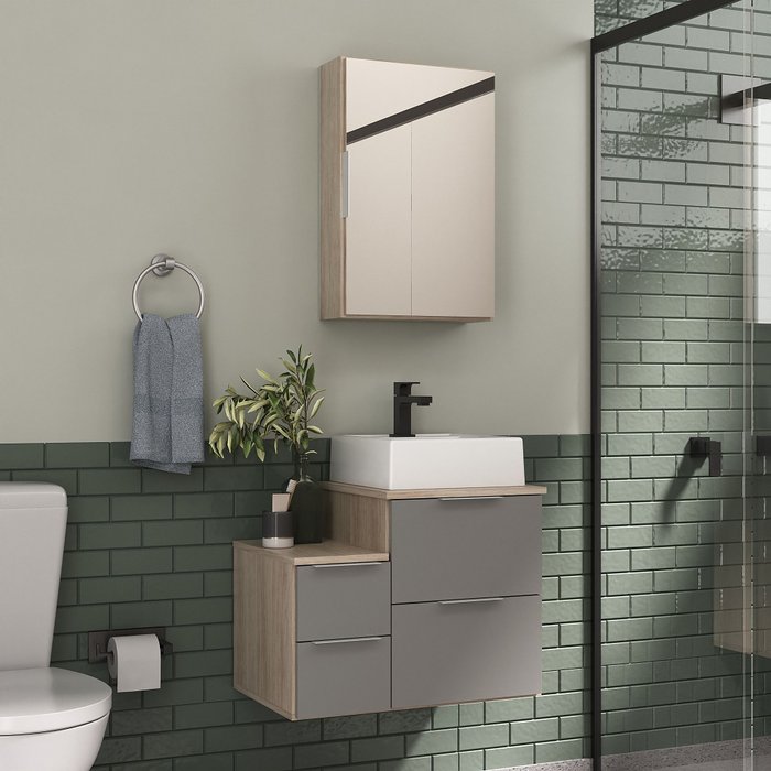 KIT BANHEIRO COMPLETO 60CM - GABINETE + CUBA + ESPELHEIRA