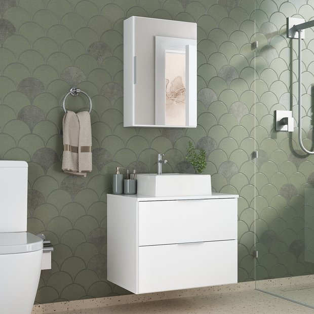 KIT BANHEIRO COMPLETO 60CM - GABINETE + CUBA + ESPELHEIRA