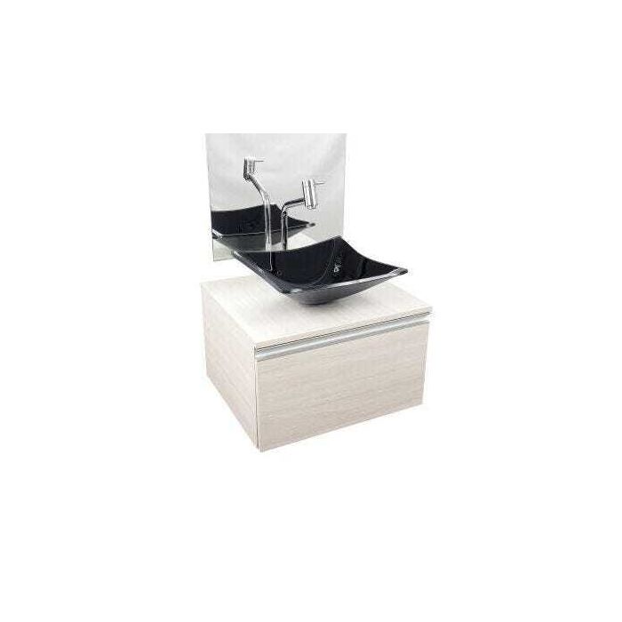 Conjunto Gabinete em mdf Claro + Cuba + Válvula + Torneira - Preto Preto