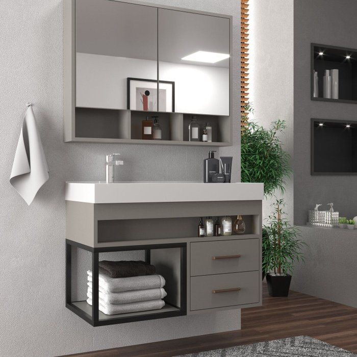 O Conjunto para banheiro Avant da Belizze vai combinar com o seu bom gosto. Compacto, prático e moderno, pois conta com uma variedade de materiais, metal e todo charme do MDF de 15cm. Ele tem 80cm de largura, e profundidade de 40cm. Já vem com uma moderna espelheira de 80cm de largura por 68cm de altura deixando tudo mais elegante e combinando com seu ambiente. Os puxadores são um detalhe especial, e remetem à praticidade. Além de tudo isso, conta com uma estrutura metálica, que além de prático dá um detalhe de beleza adicional, afinal, sua casa merece.