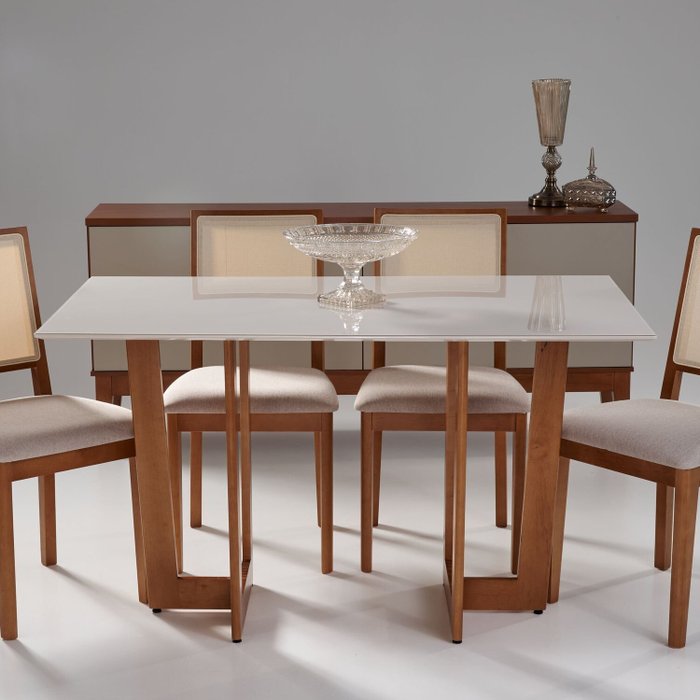 Conjunto Grécia Mesa Badem 136cm com 4 Cadeira Sila Mel