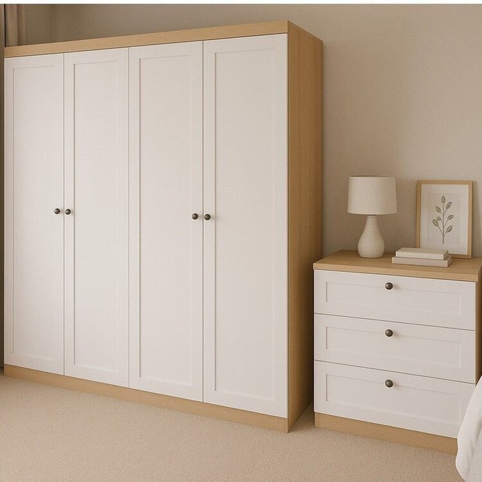 Transforme seu quarto em um ambiente sofisticado e organizado com este conjunto exclusivo composto por guarda-roupa e cômoda.