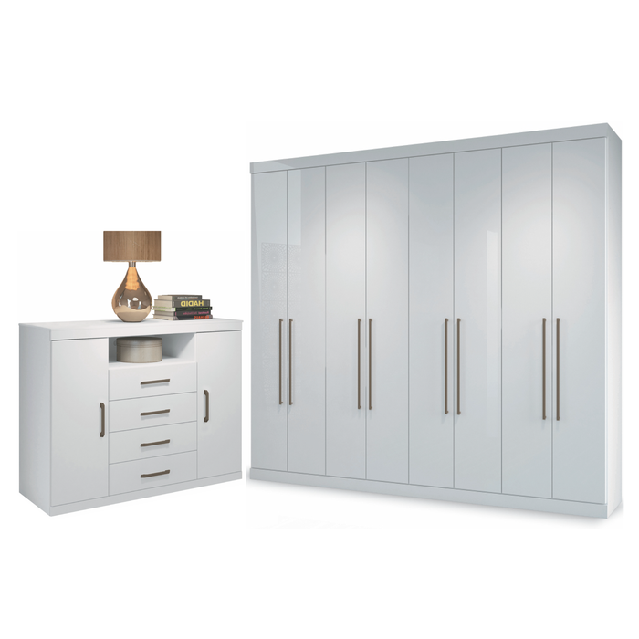 Conjunto Guarda Roupa e Cômoda Alan Branco