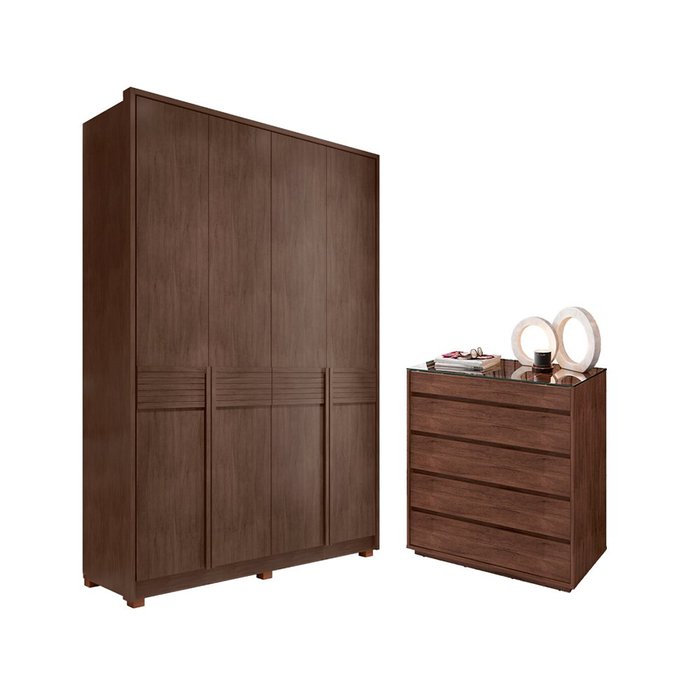 Conjunto Guarda Roupa e Cômoda Hayabusa Jacaranda