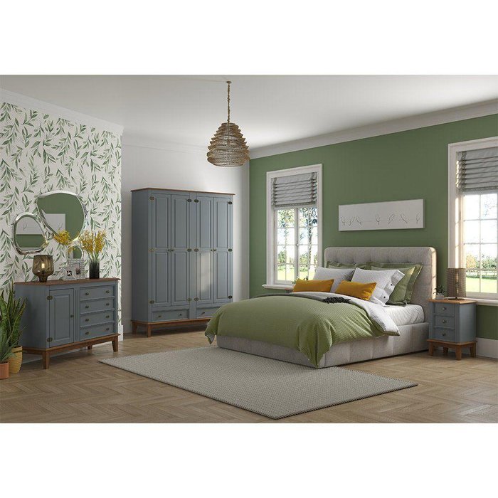 Conjunto Guarda-roupa Rústico 4 P E 2 G E Cômoda 4 G + 1 P De Madeira Maciça E Mdf Cinza