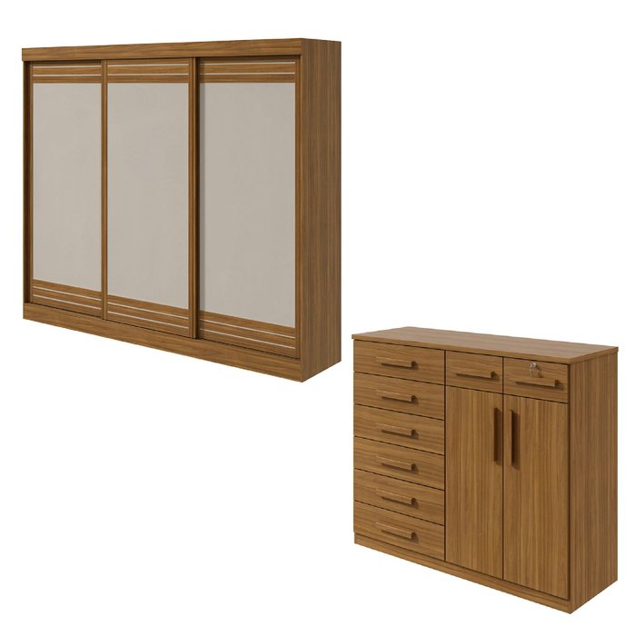 Conjunto Guarda-Roupa Speciale e Cômoda Toronto S/esp, S/pes E S/kit 2 Gav Rov Nat/off White/rov Nat Rov Nat/off White/rov Nat