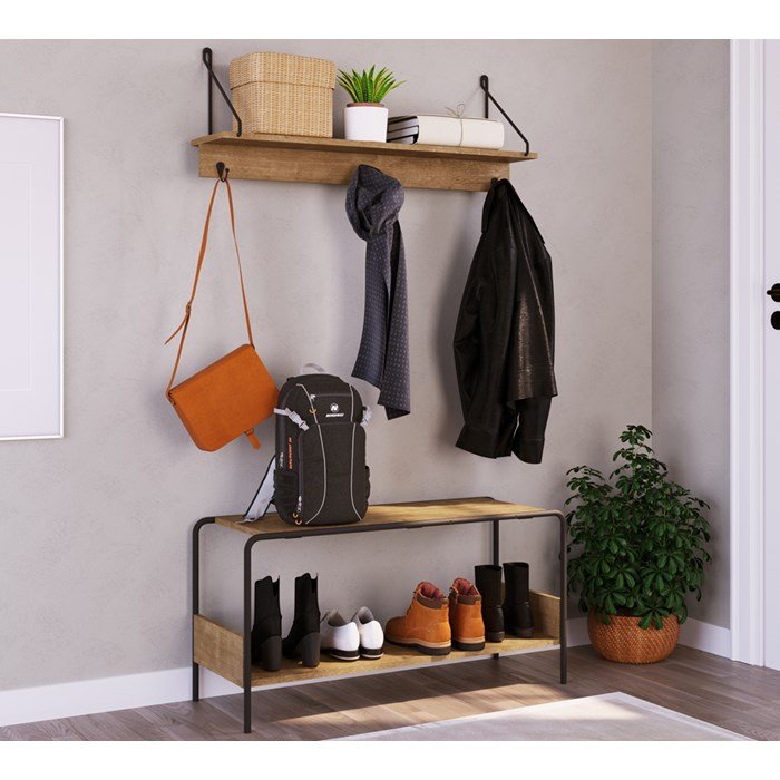 Conjunto Hall de Entrada Banco e Prateleira 27896 Linha Tube Vermont Preto Artesano