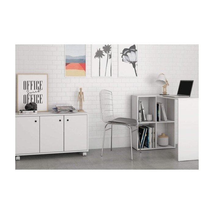 Conjunto Home Office 2 Peças Escrivaninha 4 Nichos e Balcão 3 Portas BRV Móveis Branco