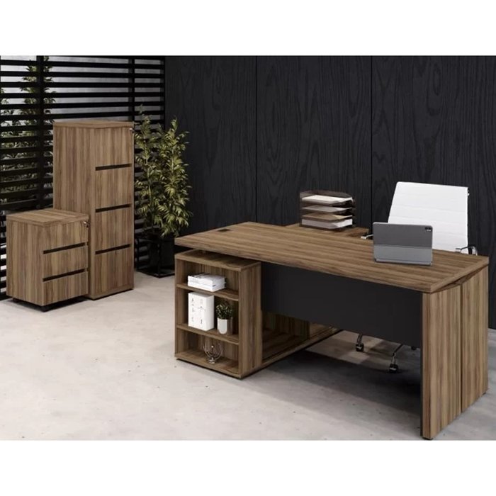 Conjunto Home Office 3 Peças 1 Mesa em L Tamburato 1 Gaveteiro Volante 1 Gaveteiro Arquivo Artany Nogal/Preto