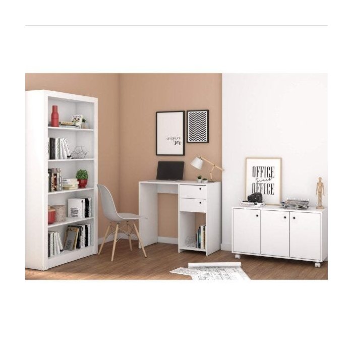 Conjunto Home Office 3 Peças Estante, Mesa Para Computador e Balcão BRV Móveis Branco