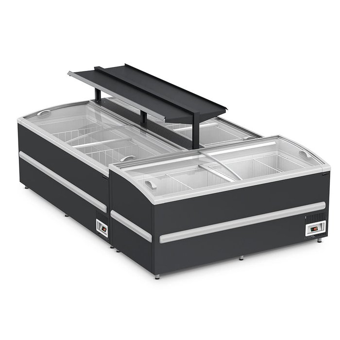 Ambas as Ilhas são produzidas com estrutura em aço galvanizado pintado na cor preta, com isolamento térmico e grades divisórias com regulagem de largura e altura no interior. As tampas superiores são deslizantes, produzidas em vidro temperado de baixa emissividade. A temperatura é controlada por controlador digital, com mínimo em -18ºC, e sua refrigeração é estática, com tubulação em cobre, gerando rápida propagação do frio e garantindo maior durabilidade e menor necessidade de manutenções preventivas. Elas contam com sistema Inverter com degelo. A Iluminação em LED 6500K garante melhor visibilidade para os produtos expostos, dando ainda toque de modernidade ao ambiente.