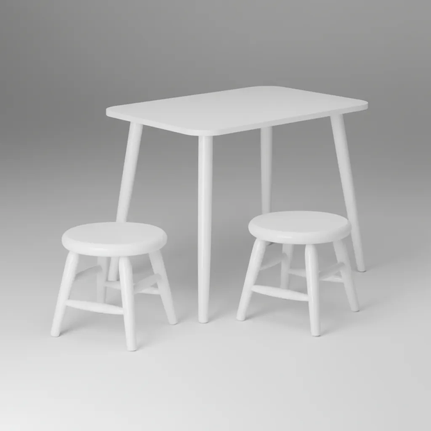 Transforme o cantinho de brincar e estudar em um espaço encantador para as crianças com a Mesa Infantil de Madeira com 2 Banquinhos Torneados em madeira maciça.