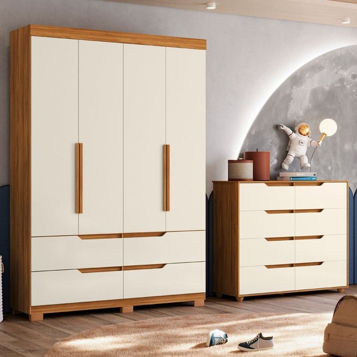 Conjunto Infantil Guarda-roupa e Cômoda Circus Cinamomo / Off White