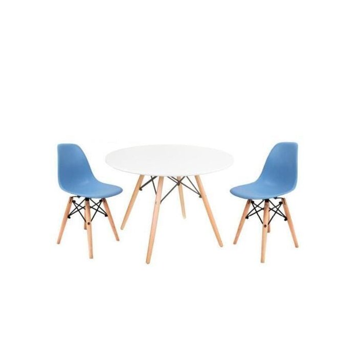 Conjunto Infantil Mesa e Cadeiras Eames Wood - Kit com 2 Cadeiras Azuis