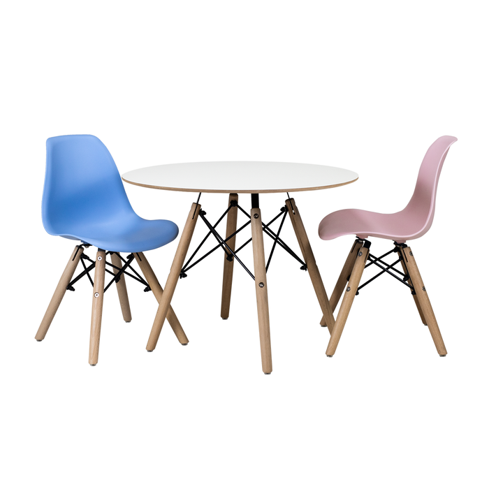 Conjunto Infantil Mesa Eames Branca 60cm com 1 Cadeira Azul Claro e 1 Cadeira Rosa