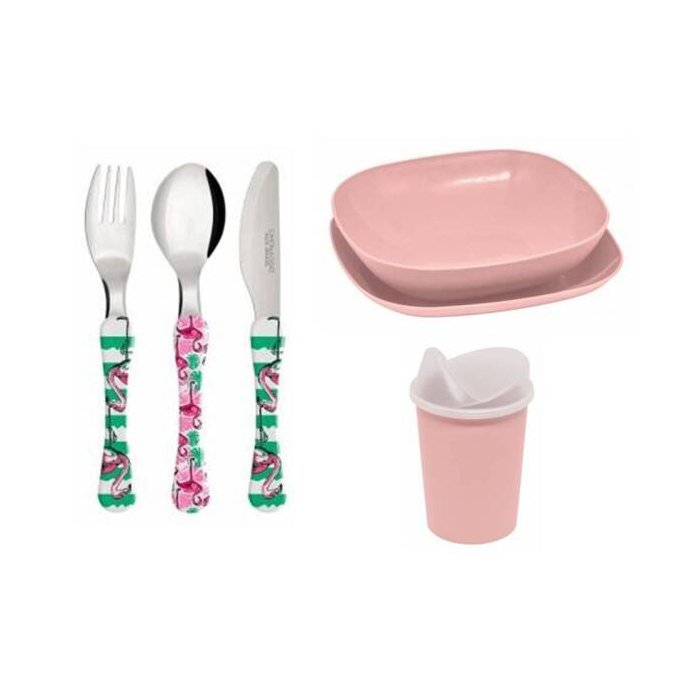 Conjunto Infantil para Refeição Simonaggio - Kids Trend - Talheres- Pratos - 6 Pçs - Flamingo