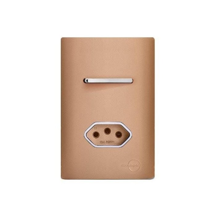 1. PLACA P/ 1 INTERRUPTOR + TOMADA COM SUPORTE 4X2 - DICOMPEL NOVARA OURO ROSE - DNV1500/78OR