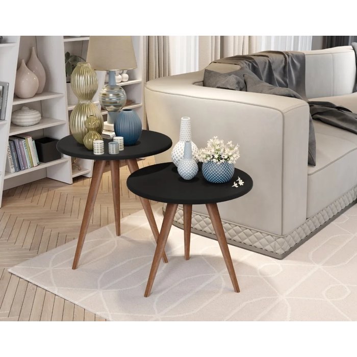 Conjunto Isa 2 Mesa Lateral Pés Palito Preto- Rede Móveis