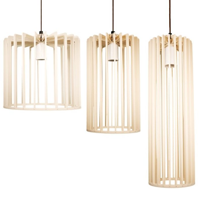 Conjunto Isac Marfim de 3 Luminárias Pendentes De Madeira - Soq: E27