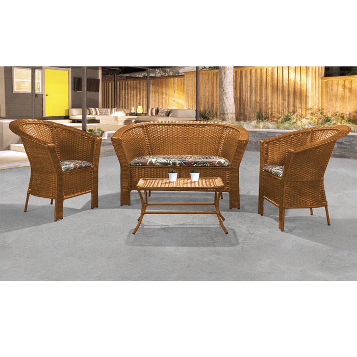 Conjunto Jardim Namoradeira + 2 Poltronas e Mesa Centro Base Aço Maresias em Junco - Imbuia Imbuia