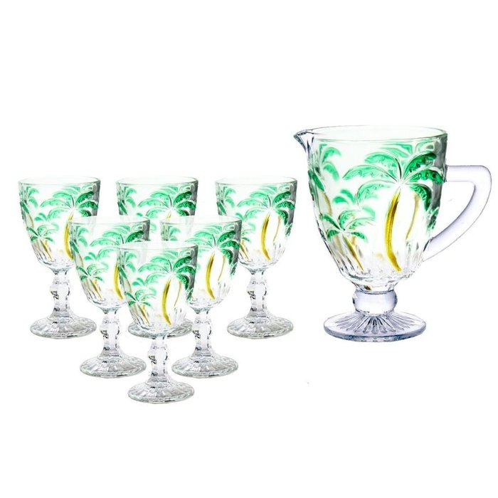 Conjunto Jarra 1350ml e 6 Taças Diamond Palm Tree Palmeira 320ml - Viva Flor