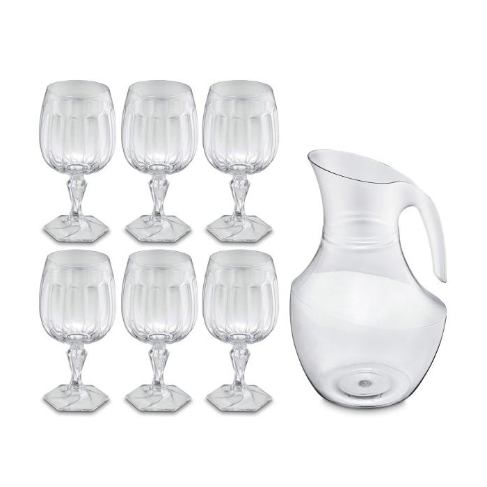 Conjunto Jarra 2,1L E 6 Taças 350ml Plástico Jogo De Refresco Valsa Transparente UZ