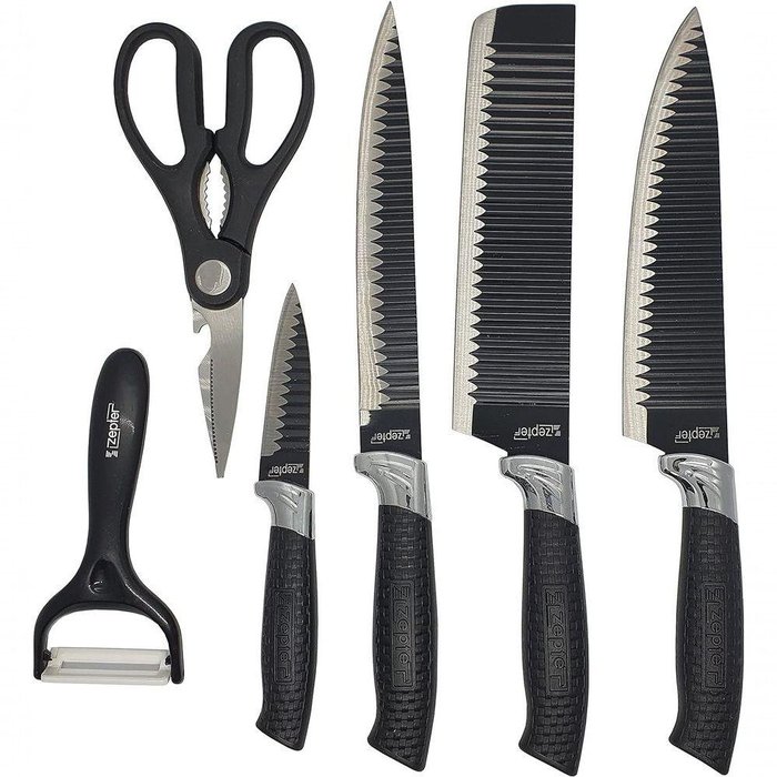 Conjunto Jogo Facas Do Chef Profissional 6 Peças Churrasco Cozinha Peças Aço Inox Super Afiadas Cor Preto Premium Jogo Kit 6 Facas Chef Cozinha Inox Antiaderente Um conjunto completo de alta qualidade com múltiplas funções! Este conjunto inclui seis peças com revestimento antiaderente, lâminas afiadas e um design de ângulo com cabo ergonômico para garantir maior precisão, desempenho e uso seguro das lâminas. As peças são feitas de aço inoxidável de alta durabilidade e qualidade. As lâminas são selecionadas para usos específicos, tornando este conjunto adequado para uso em todos os preparativos diários na sua cozinha. ITENS INCLUSOS NO CONJUNTO: - 1x Faca Cutelo: Perfeita para tarefas que exigem um corte mais preciso e uma alavanca adicional.