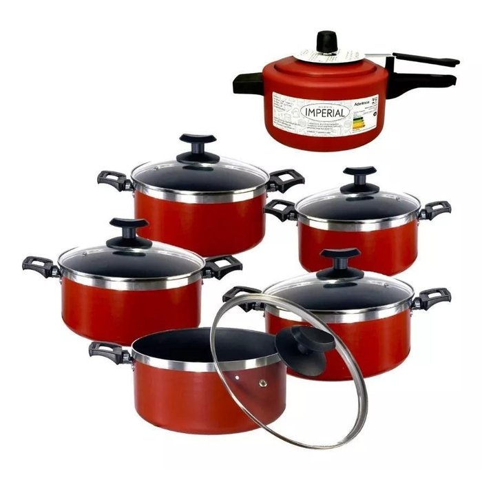Conjunto Jogo Panelas Antiaderente Teflon C Panela D Pressão Vermelho escuro