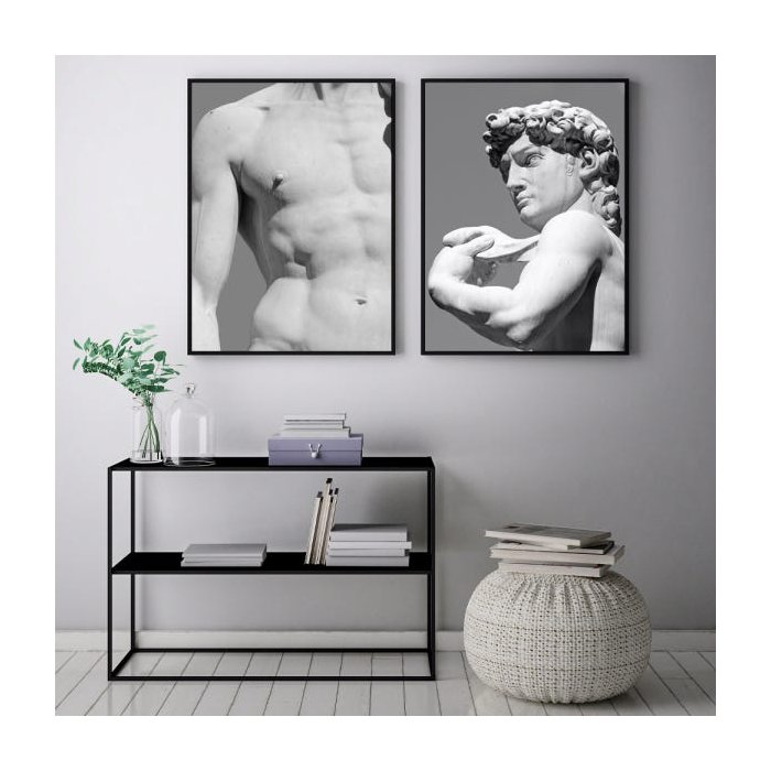Conjunto Kit 2 Quadros Estátua David de Michelangelo Florença Itália Moldura Preta - Oppen House Dec