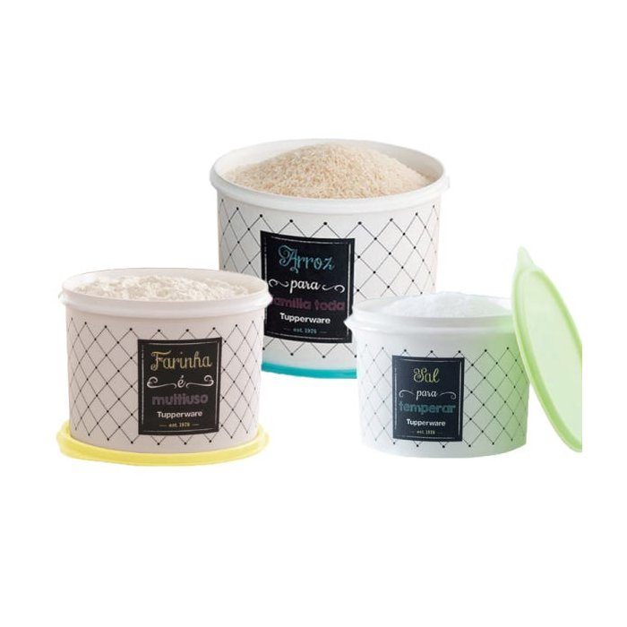 Conjunto Kit 3 potes Tupperware Arroz,Farinha,Sal