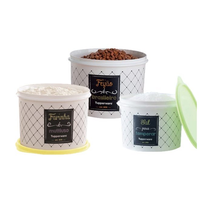 Conjunto Kit 3 potes Tupperware bistrô Feijão,Farinha e Sal