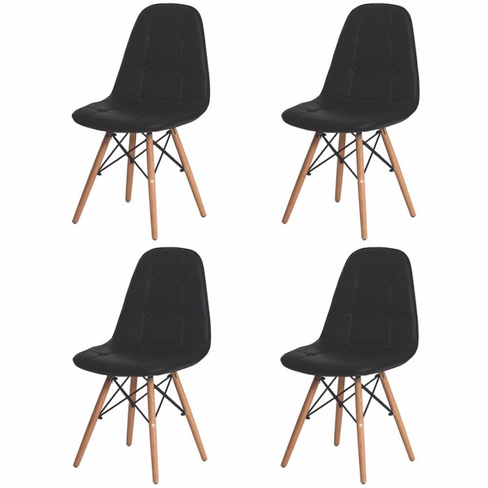 Kit 4 Cadeiras Para Mesa De Jantar Com Encosto Estofada Escrivaninha Penteadeira Cozinha Sala Charles Eames Eiffel Botonê Capitonê Base Madeira Wood Preta