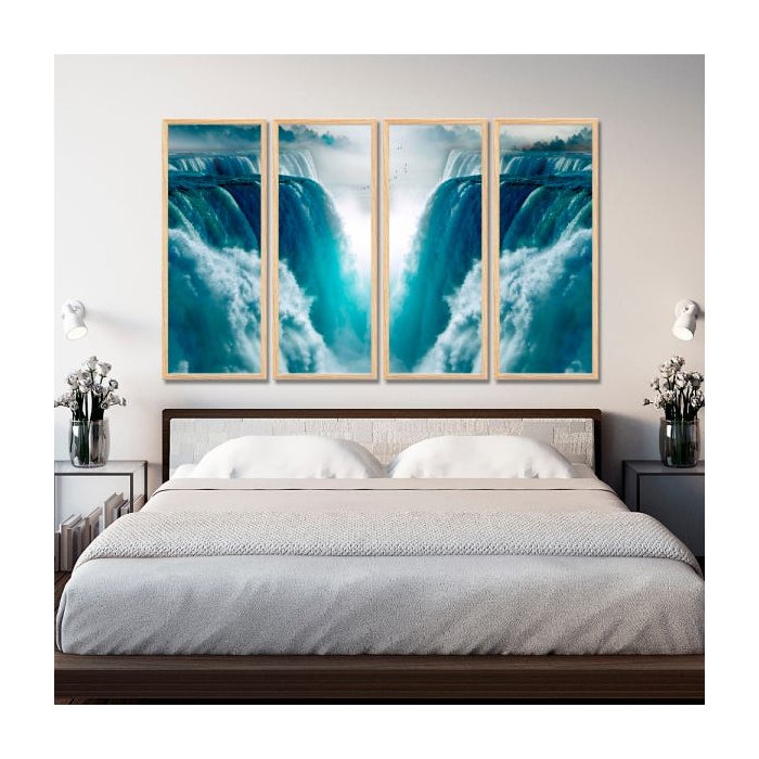 Conjunto Kit 4 Quadros Paisagem Cachoeiras Queda D'Água Moldura Madeira Crua - Oppen House Quadros De