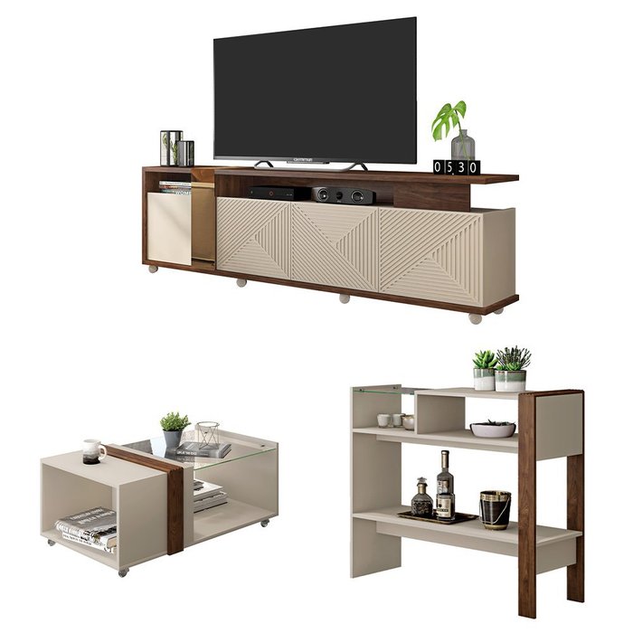Conjunto Kit Sala Bancada Mesa Aparador Columbus Caemmun Havana / Off White