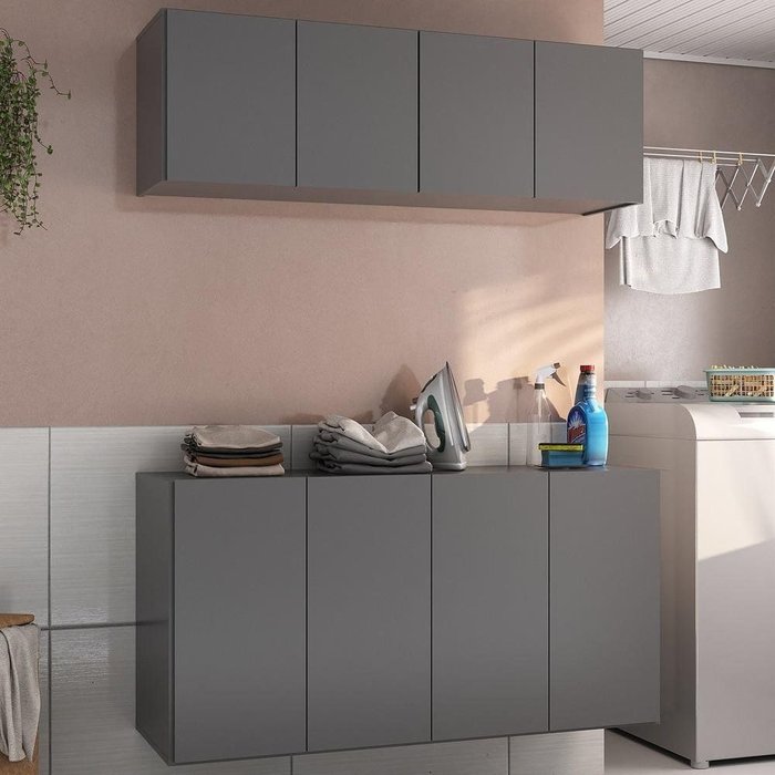 Conjunto Lavanderia Suspenso Multiuso Armário Aéreo e Balcão 4 Portas Multimóveis Mp5052 Grafite