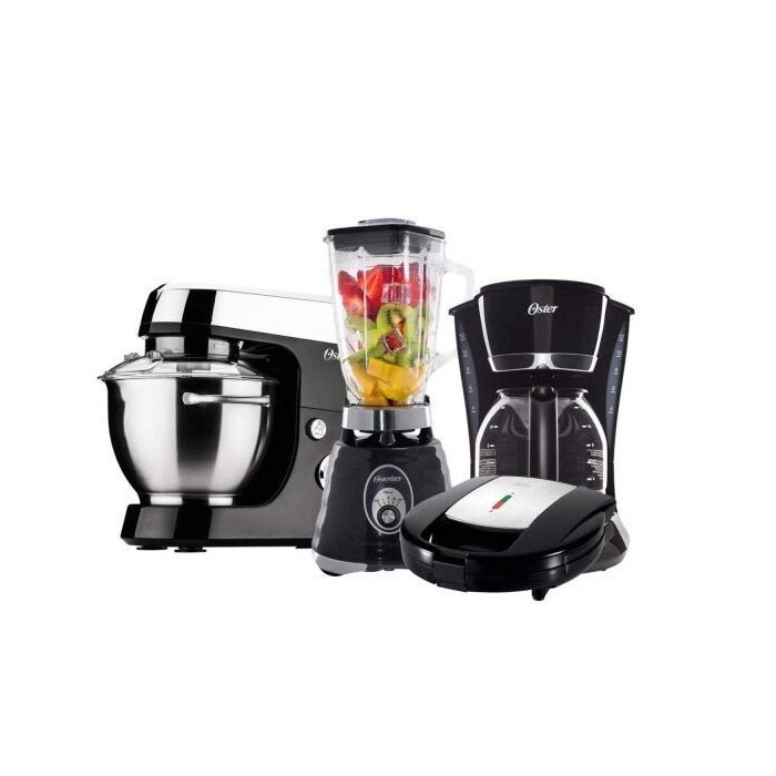 Conjunto Liquidificador, Batedeira, Cafeteira e Sanduicheira Waffle 220V Oster Preto