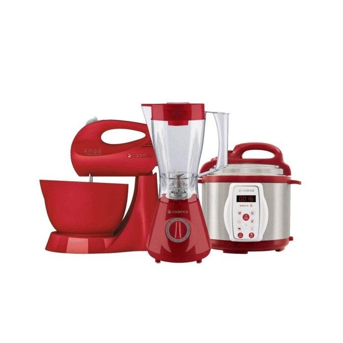 Conjunto Liquidificador, Batedeira e Panela de Pressão 127V Cadence vermelha