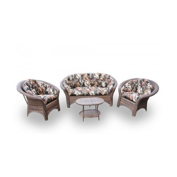 Conjunto Madagascar - 1 sofá + 2 poltronas + Mesa Oval - Rivieira Marrom