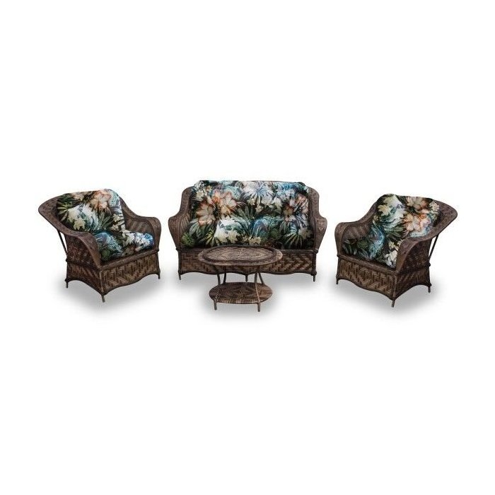 Composto por:Material em aço galvanizado revestido em fibra sintética. 1 Sofá 2 Lugares - Altura do assento com almofada 48 cm;Dimensões (AxLxC) (91 x 150 x 91 cm).2 Poltronas - Altura do assento com almofada 48 cm;Dimensões (AxLxC) (91 x 91 x 91 cm).1 Mesa de centro oval;Dimensões (AxLxC) (48 x 43 x 78 cm).Produtos Fábrica de Sintéticos são confeccionados de forma artesanal e podem ocorrer variações nas dimensões. Os produtos são revestidos com tecidos Acquablock.Composição 72% algodão 28% poliéster.Acquablock® é inteligente.