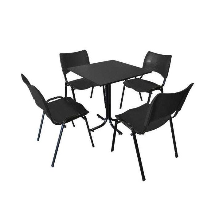 Conjunto Mariana Mesa Fixa 70x70 com 4 Cadeiras Empilháveis Preta Ferro/Plástico