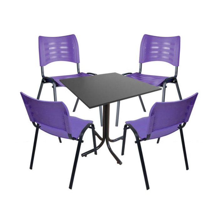 Conjunto Mariana Mesa Fixa 70x70 com 4 Cadeiras Empilháveis Roxa Ferro/Plástico