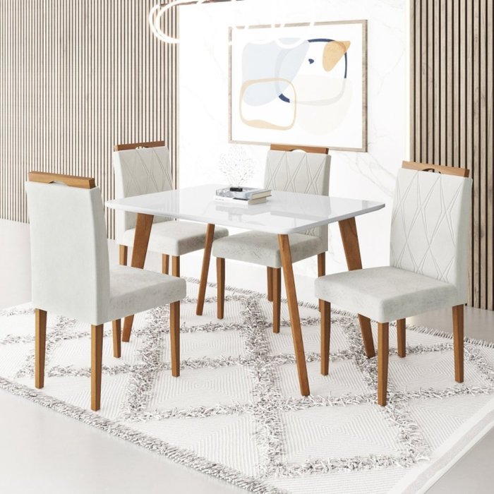 Conjunto Mesa 120x80 com 4 Cadeiras Fortaleza Uno Off White/Mel/Marfim