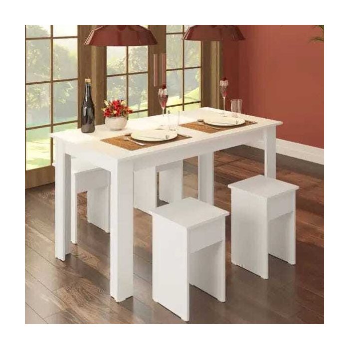 Conjunto Mesa 135cm 4 Banquetas - Branco