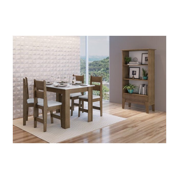 Conjunto Mesa + 4 Cadeiras + Buffet Ameixa/Branco - Móveis Canção