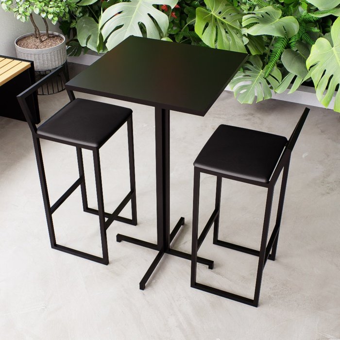 Conjunto Mesa Alta Bar Bistrô Quadrada Preta 2 Banquetas Confort Estofado Industrial Black