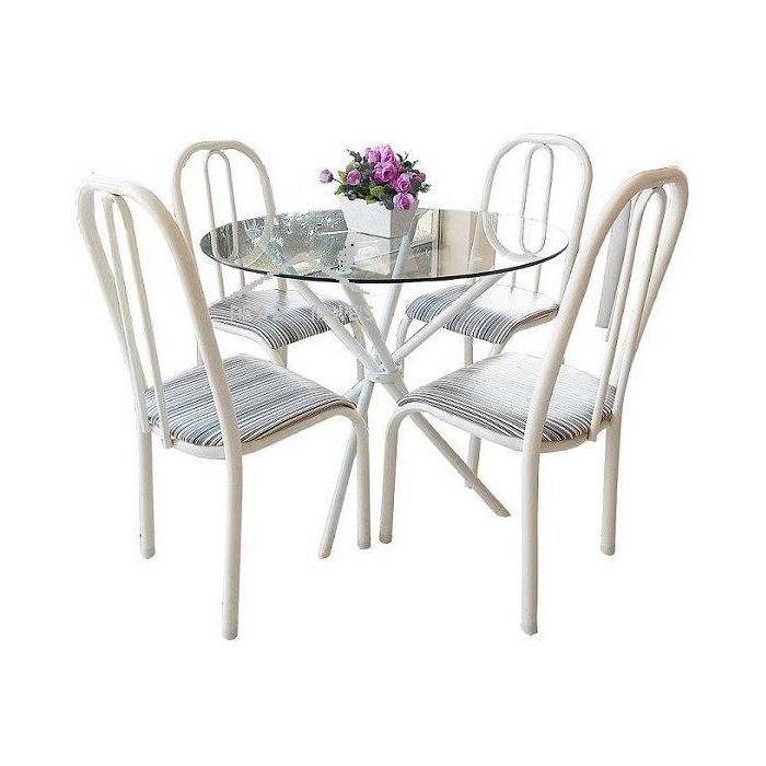 Conjunto Mesa Amazônia Redonda Vidro 04 Cadeiras Branca Aço Quality