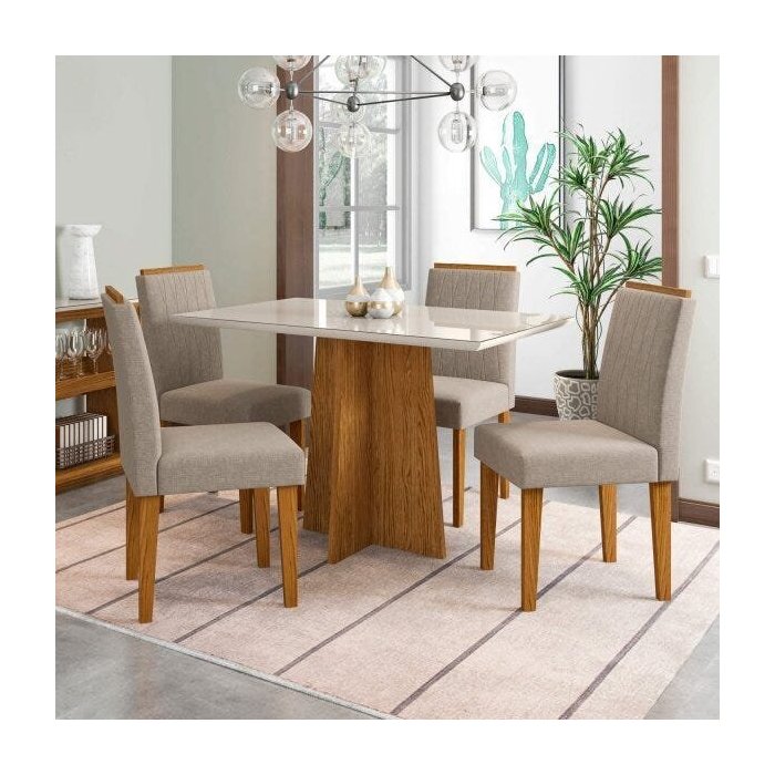 Conjunto Mesa Ana 1,20M com 4 Cadeiras Ana Ypê/Off White/TL13