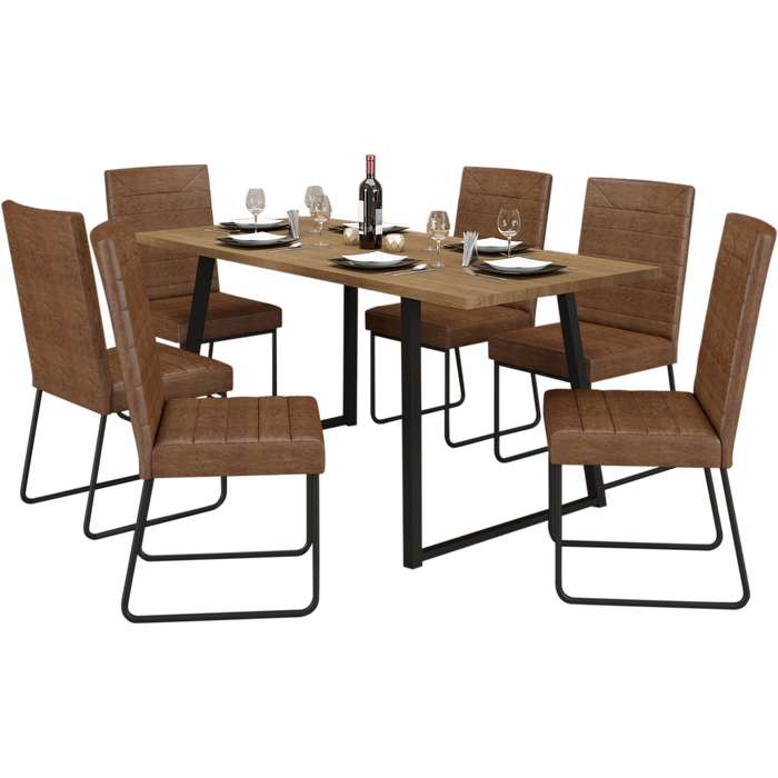 Conjunto Mesa Atlanta 1,70x0,80 - 6 Cadeiras Olimpia Preto Fosco com Assento Marrom