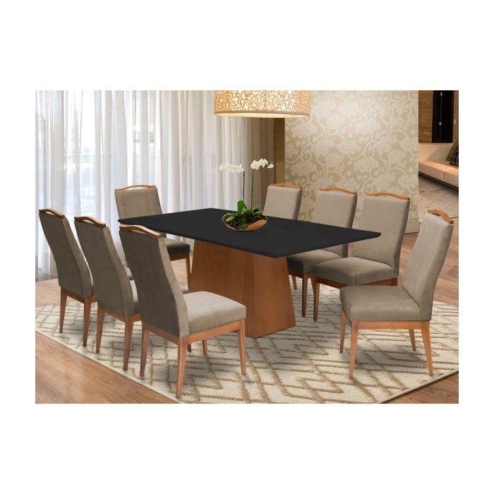 Conjunto Mesa Bianca Preto 2,08 M + 8 Cadeiras Lara Aveludado Nude